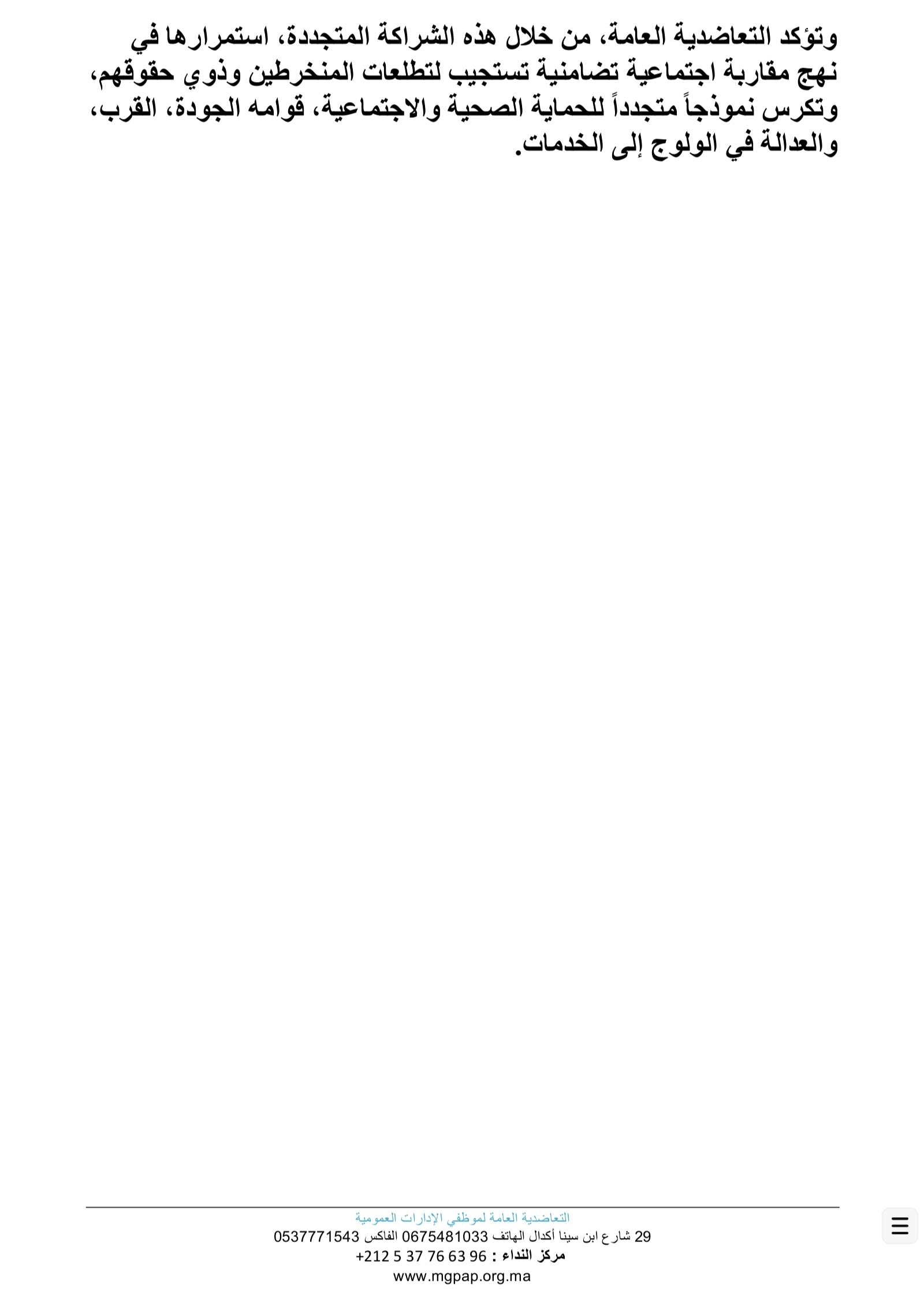 ومن شأن هذه الخطوة أن تُشكل نموذجًا يُحتذى به في مجال الشراكات بين المؤسسات التعاضدية والهيئات الصحية، بما يسهم في الرفع من مستوى الحماية الاجتماعية وتعزيز الثقة في المنظومة الصحية الوطنية.