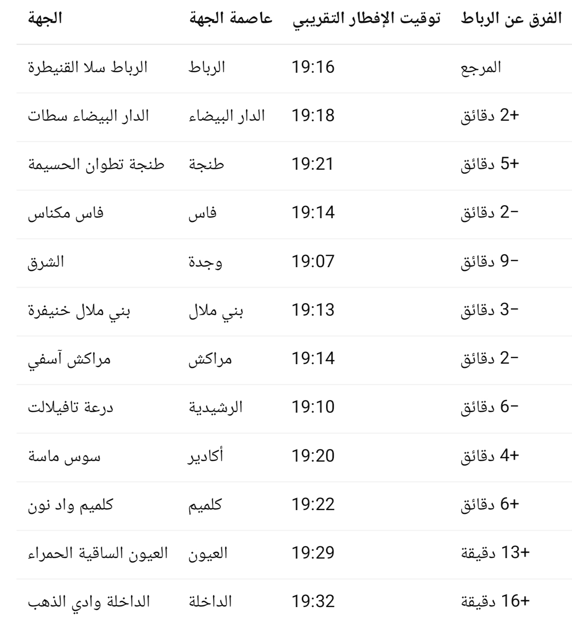 إن الفارق الزمني بين أول مدينة تفطر في المغرب، مثل وجدة، وآخر مدينة مثل الداخلة، يصل إلى حوالي خمسٍ وعشرين دقيقة. وهو فارق زمني كافٍ ليجعل أي برمجة إعلامية مرتبطة بلحظة الإفطار تحتاج إلى قدر من المهنية والدقة في التخطيط، وليس إلى قرارات متسرعة تبدو وكأنها صُممت على مقاس مدينة واحدة.