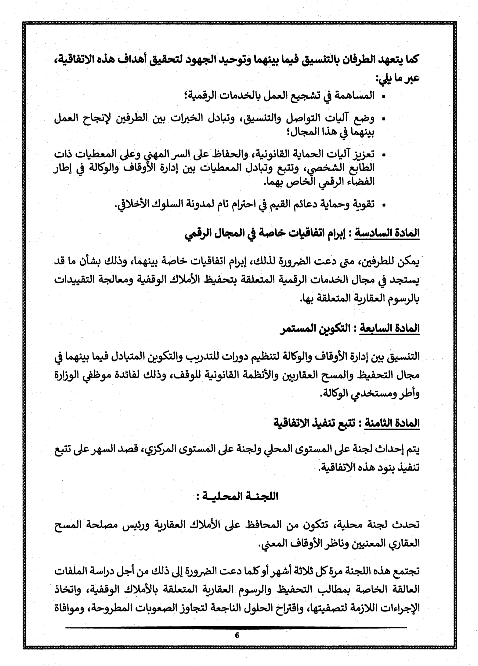 وتشكل اتفاقية الشراكة مع الوكالة الوطنية للمحافظة العقارية إحدى الآليات الأساسية لتحقيق هذه الأهداف.